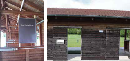 Weitere Werbeflächen auf dem Gelände: Gleiches gilt für die Werbeanbringung an der Halfwayhütte an Loch 8 sowie an der Schutzhütte an Loch 13. Diese Standorte ermöglichen eine breite Sichtbarkeit Ihrer Werbung für alle Golfspieler, die die jeweiligen Bereiche aufsuchen.
